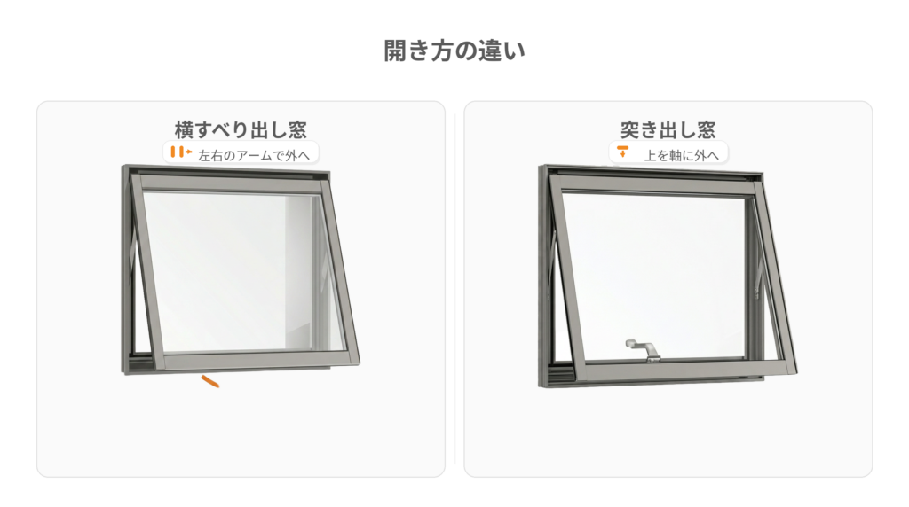 横すべり出し窓と突き出し窓の違いをどう理解すればよいか