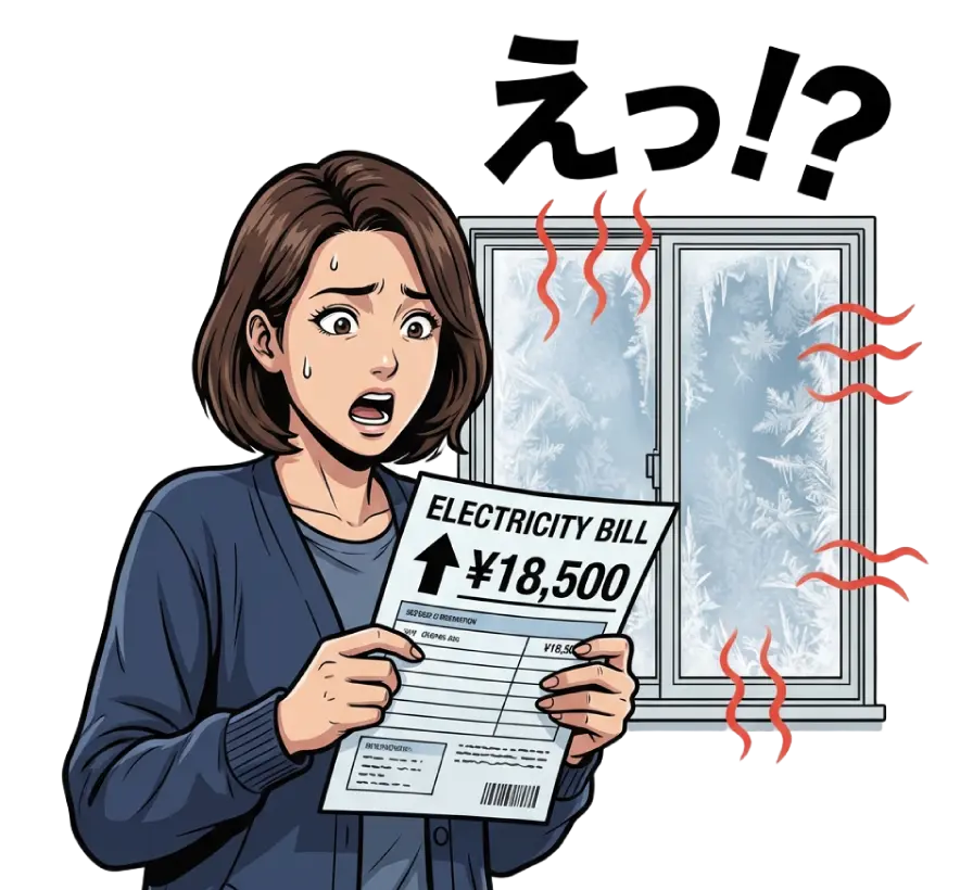 その結果、エアコンの稼働時間が長くなり、必要以上の電力を消費してしまいます。特に単板ガラスや古いアルミサッシの住宅では、この傾向が顕著に現れます。