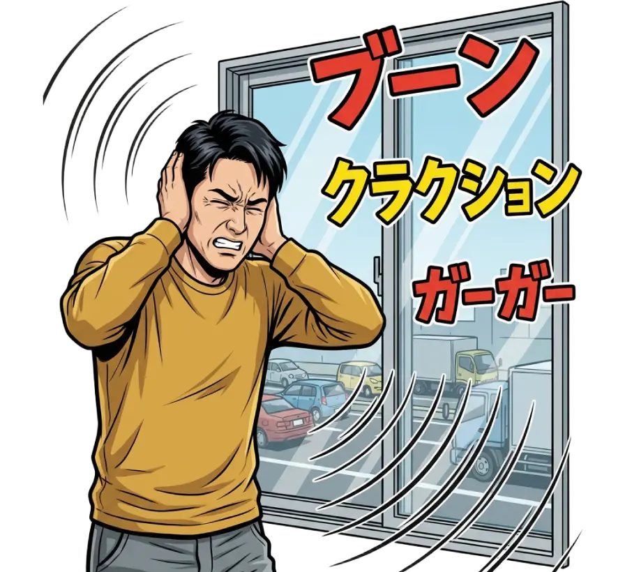 「外の車の音や人の話し声が気になる」「夜でも騒音でゆっくり休めない」といった悩みは、窓から音が入り込んでいるケースが多く見られます。特に北九州市のように幹線道路や住宅が近いエリアでは、外の音の影響を受けやすい環境になっています。